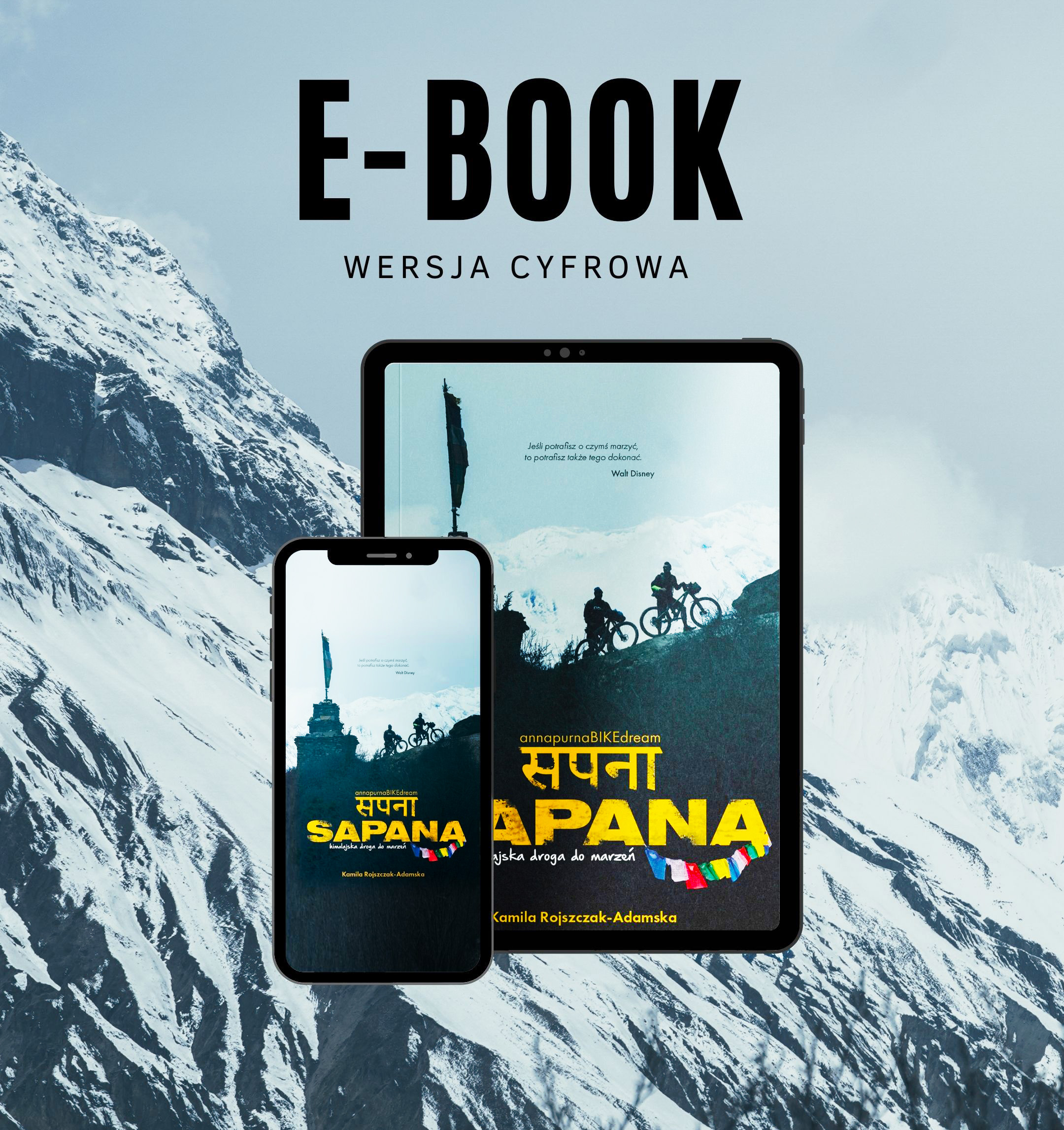 „SAPANA I himalajska droga do marzeń” eBOOK – to cyfrowa wersja książki w formie przygodowego reportażu, opowiadającej o rowerowej wyprawie siódemki przyjaciół, którzy okrążają masyw Annapurny. Ich celem jest zdobycie przełęczy, położonej na wysokości 5416 m n.p.m. Uczestnicy wyprawy, zmagając się z piękną wysokogórską naturą oraz dużą wysokością, odkrywają nie tylko geograficzne, ale również duchowe oblicze tego regionu.