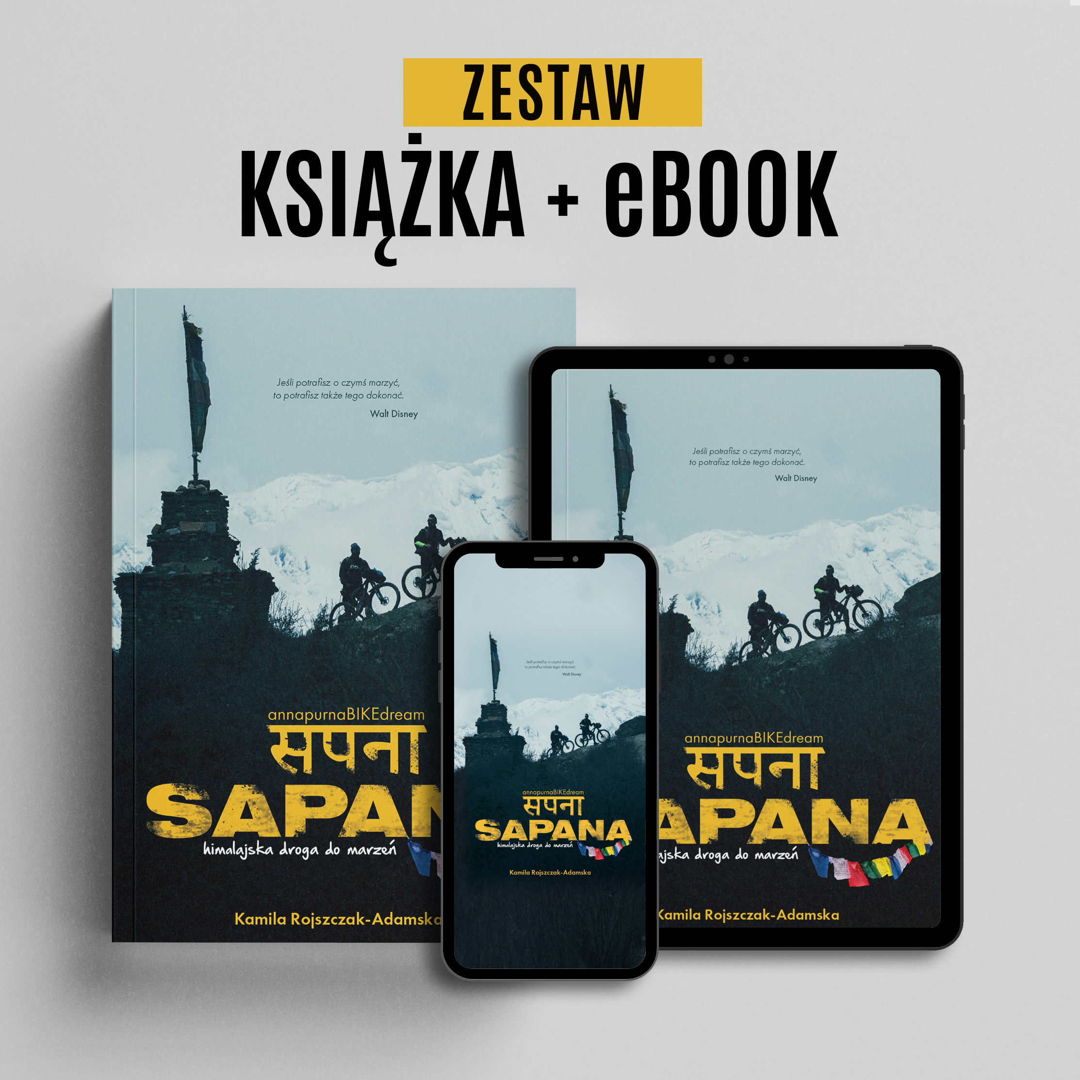 W tym zestawie otrzymujesz książkę „SAPANA” w wersji papierowej oraz wersję cyfrową w postaci eBOOKA. Czytasz gdzie chcesz i jak chcesz. Przeżyj swoją podróż w Himalaje po swojemu.